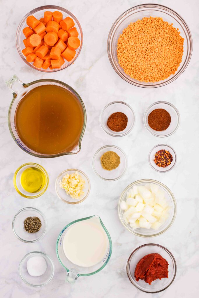 - Red Lentils: This soup gets its color and flavor from the red lentils and carrots. Red lentils cook in less time than green. You can substitute the red lentils for green lentils, the color and cooking time will change slightly.