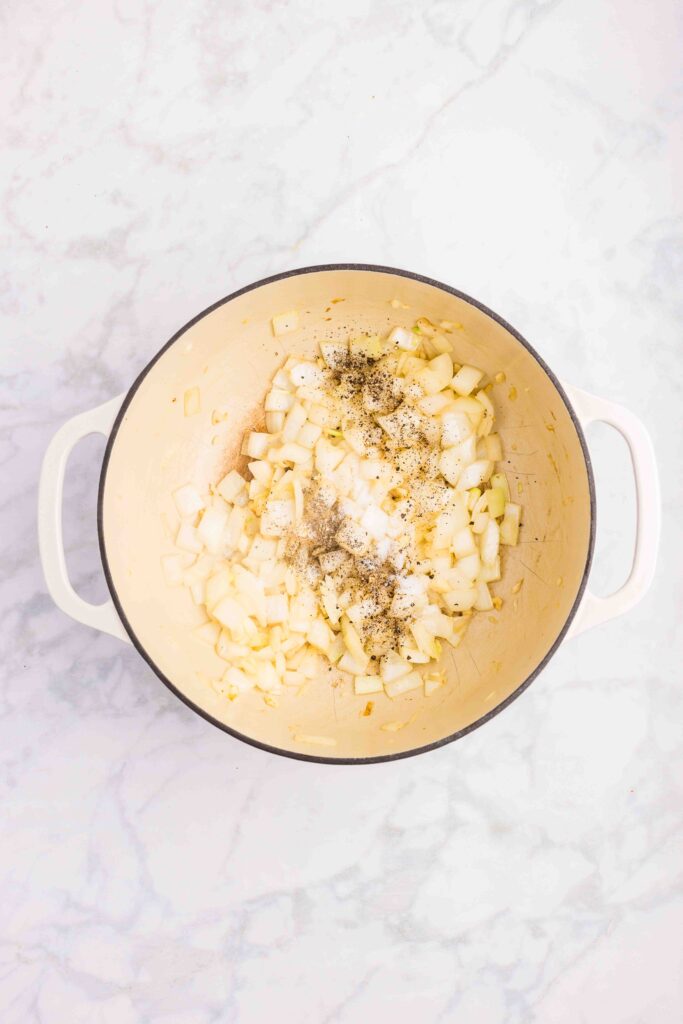 Once the onions become translucent, season with salt and pepper.